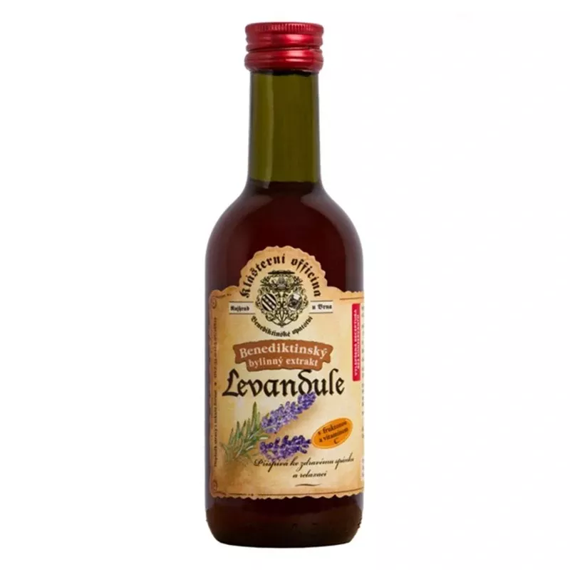 Benediktinský bylinný extrakt z levandule úzkolisté (Lavandula angustifolia) ve formě sirupu přispívá k relaxaci, duševní pohodě, normálnímu trávení a spánku. Hlavní účinnou látkou je éterický olej, kyselina rozmarýnová a hydroxykumariny.