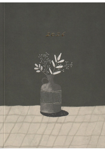 Diár 2026 s motívom zátišia rastlín vo váze.
