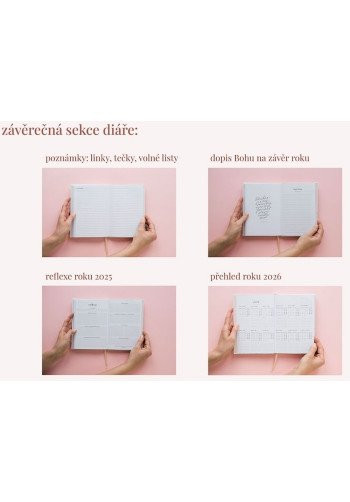 - na konci: priestor na poznámky, list Bohu, zamyslenie nad rokom, kalendáre