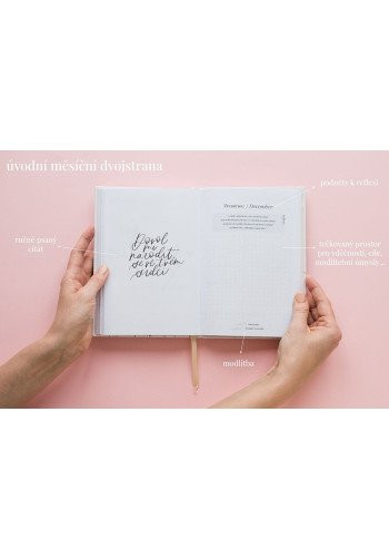 - na konci: priestor na poznámky, list Bohu, zamyslenie nad rokom, kalendáre