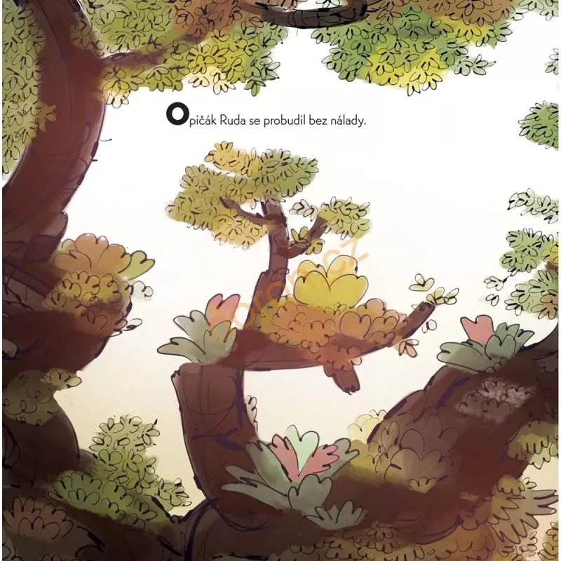 Ruda si utrhl krásný žluťoučký banán. Ale ne, spadl mu na zem! Než se k němu opičák dostal, našel jej Vilda. „To je MOJE!“ křičí teď oba dva.