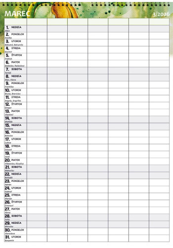 Kalendár je určený na plánovanie aktivít. Každý mesiac je samostatný a rozdelený na niekoľko stĺpcov. Každý člen rodiny tak má svoj priestor na plánovanie. Nástenný kalendár je delený po mesiacoch.