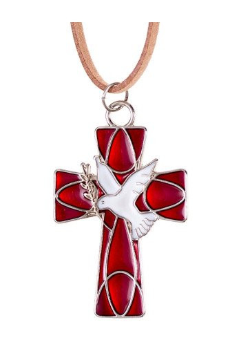 - Prívesok (K3019A-3) Krížik s holubicou - červený