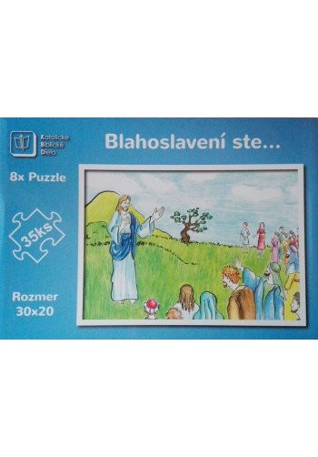 Ako prezrádza titul, ilustrácie sú motivované blahoslavenstvami, ktoré Ježiš povedal na začiatku svojej reči na hore (Mt 5,1-12). K jednotlivým blahoslavenstvám sú priradené výjavy z biblických rozprávaní.Balenie obsahuje osem ilustrácií – puzzle vo veľkosti 30 x 20 cm a jednotlivé puzzle sa skladajú z 35 častí. Veríme, že aj táto forma, pri ktorej deti strávia viac času, im môže pomôcť poznávať Ježiša, jeho slovo a hodnoty, ktoré Ježiš pozýva žiť svojich učeníkov.Veríme, že puzzle prinesie radosť z hry v rodinách, v materských škôlkach, alebo spestrí hodiny náboženstva žiakom 1. stupňa základných škôl.