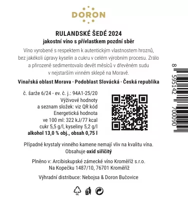 Plněno v: Arcibiskupské zámecké víno Kroměříž
