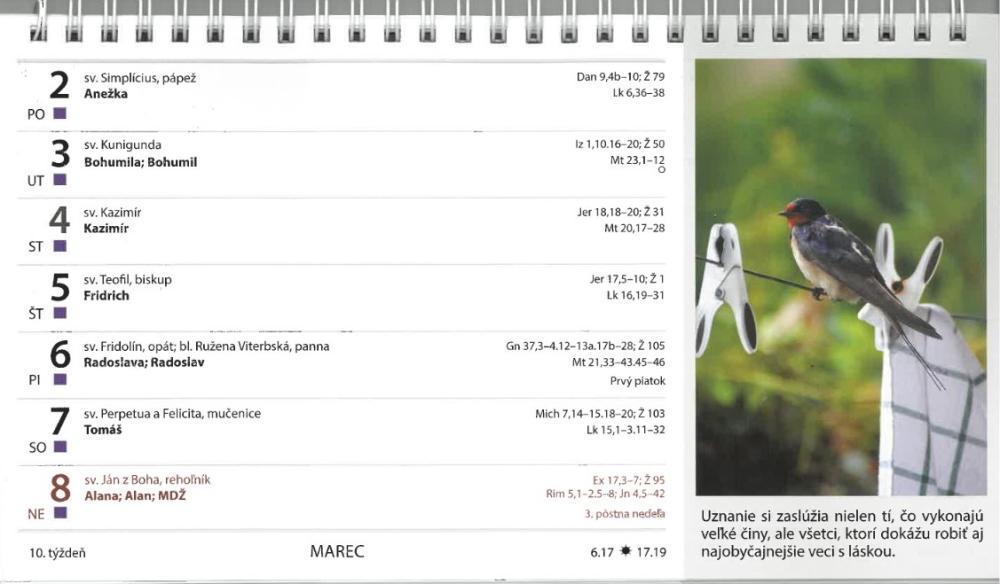Katolícky kalendár s vybornými citátmi a peknými obrázkami