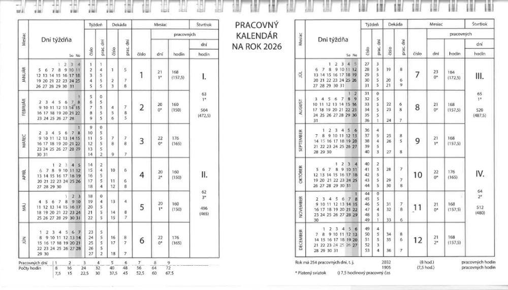 kalendár v slovenskej verzii, rozmery: 16,5 x 24 cm