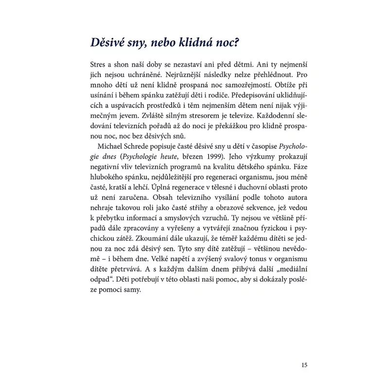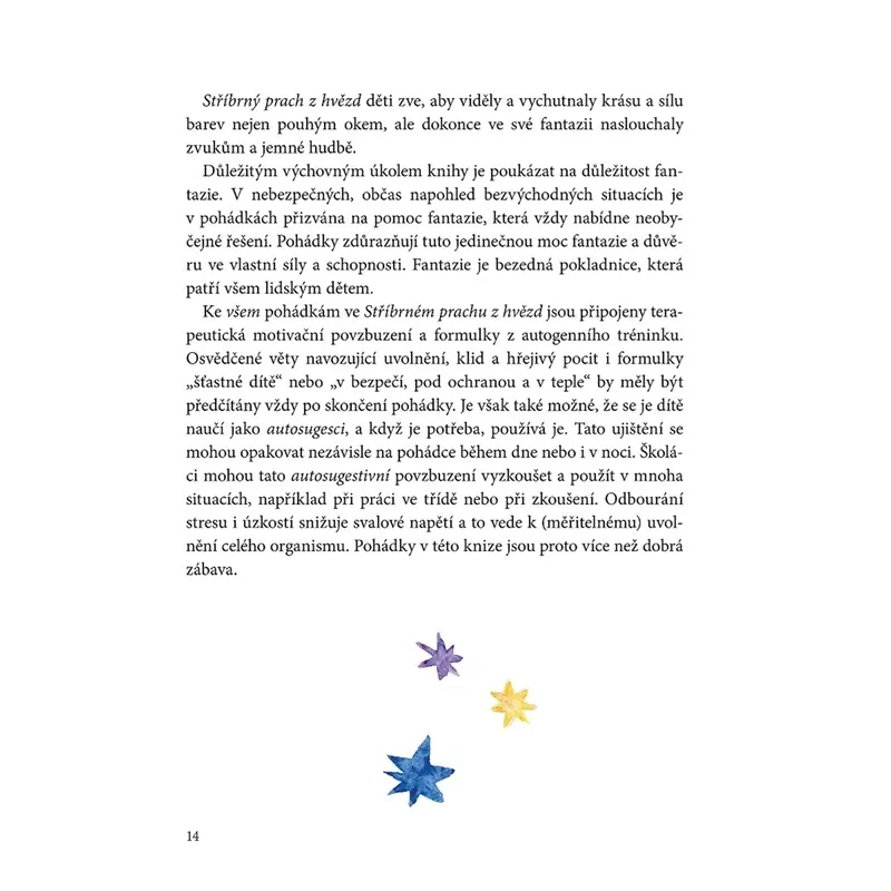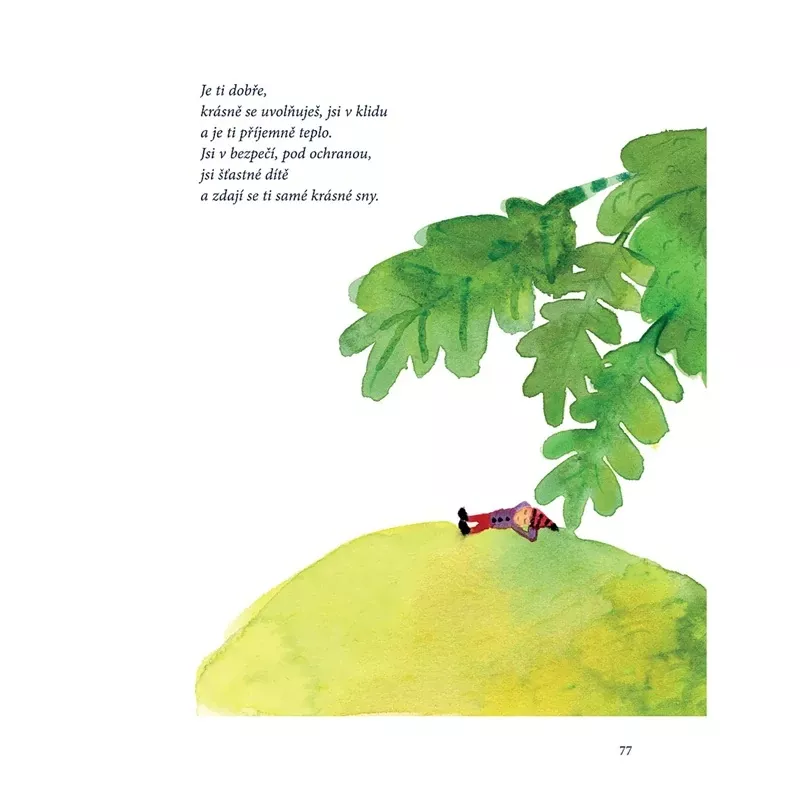 Pohádková kniha určená k tomu, aby dětem pomohla vypořádat se s rušivými vlivy dne, zbavit se případných obav a úzkostí a aby navodila atmosféru, ve které se bude dětem krásně usínat. Kniha je psána podle metody autogenního tréninku prof. J. H. Schultze. Tato metoda má děti na spánek připravit, uvolnit, povzbudit jejich fantazii a rozvinout ji do klidného příběhu, který dětem pomůže usnout a odpočinout si. Kniha je určena dětem v domácím prostředí, stejně tak ale své využití nalezne i v mateřských školách, ve školních družinách, u dětských psychologů a speciálních pedagogů. Všude tam, kde je dobré dětem pomoci se zklidnit a kvalitně si odpočinout.