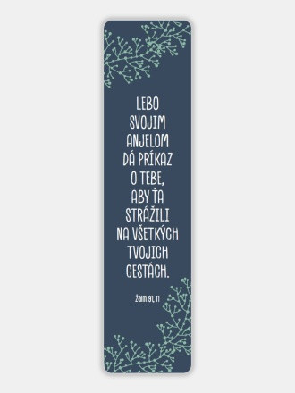 Praktická papierová záložka do knihy s citátom:"Lebo svojim anjelom dá príkaz o tebe, aby ťa strážili na všetkých tvojich cestách." Žalm 91, 11Rozmer: 4,5 x 18 cm.